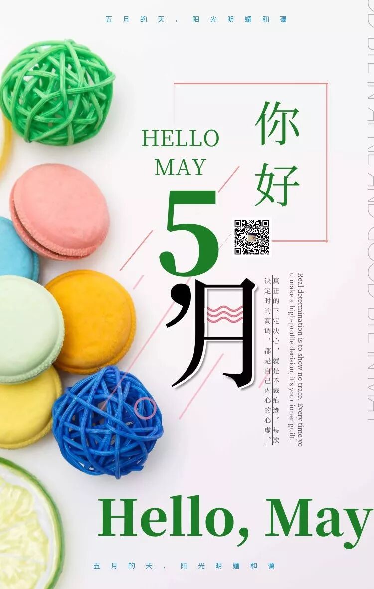 五月,给自己一个全新的开始:读一本好书,看一场电影、约三两好友偷得浮生半日闲,聊风花雪月,谈人生理想,努力减肥,按时睡觉。让自己更好来遇见更好的未来,让过去过去,让未来发生。与世界交手多年,愿岁月必不会辜负诚恳的每一天,4月再见,5月你好!