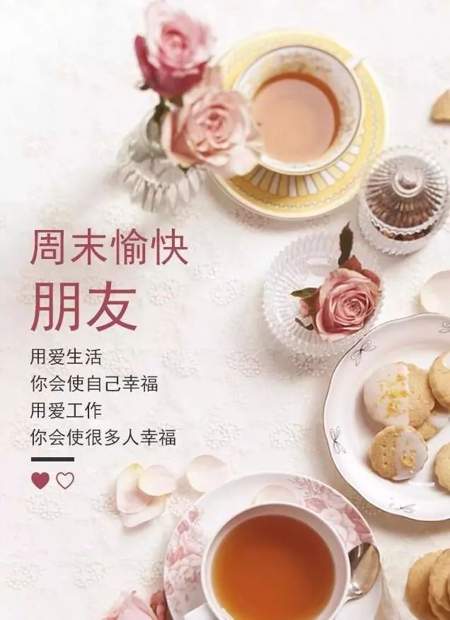 8、周末到,心意到,温暖的话儿当衣帽;暖暖心,驱寒燥,幸福的滋味身上绕;送问候,解烦恼,看看短信开口笑;说心愿,要记牢,身体保健要搞好;多饮水,夜少熬,健康快乐总逍遥;祝愿你,像个宝,周末里最美好!