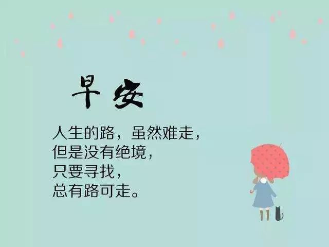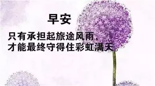 1、 人生如行路,一路艰辛,一路风景。人格是一种力量,魅力是一个磁场。自信是成功的阶梯,自律是成长的保障;真诚是人际的桥梁,宽容是处世的境界;守信是一张名片,乐观是一种态度;担当是一种责任,坚韧是一种精神。早安!