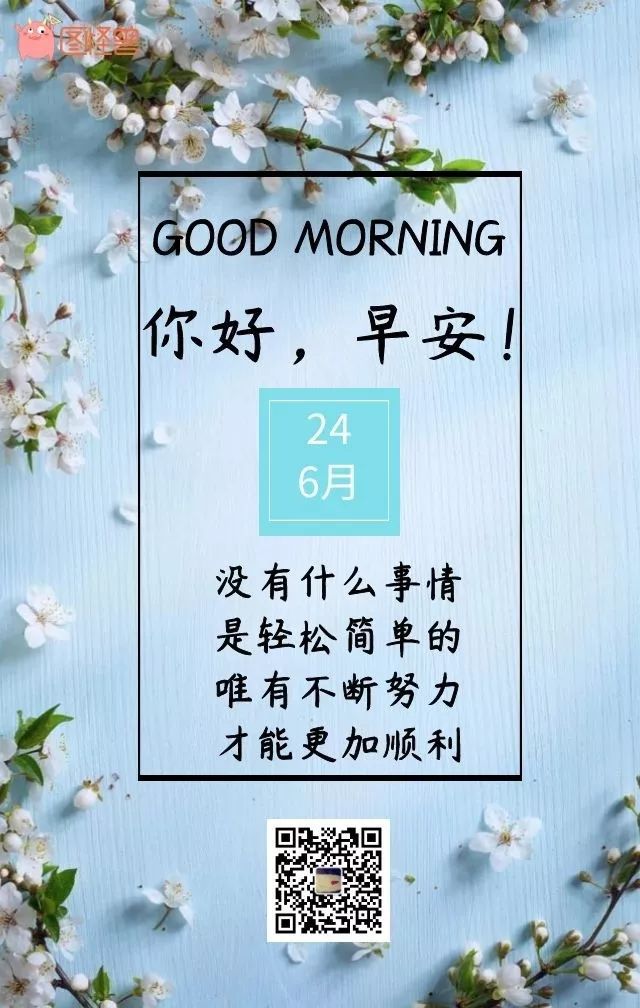 2、人活一世,吃苦没什么不好,它能让你更好地珍惜甜的滋味;忍耐没什么不好,人生需要等待,没有沉默就难有爆发;平凡没什么不好,能够每天感受生活的美 好,就是一种莫大的幸运;妥协没什么不好,退一步地阔天高,容忍别人其实是放过自己;失败没什么不好,只要摧毁不了你,只会让你更坚强。 我努力进取的速度,一定要超过父母老去的速度!早安~