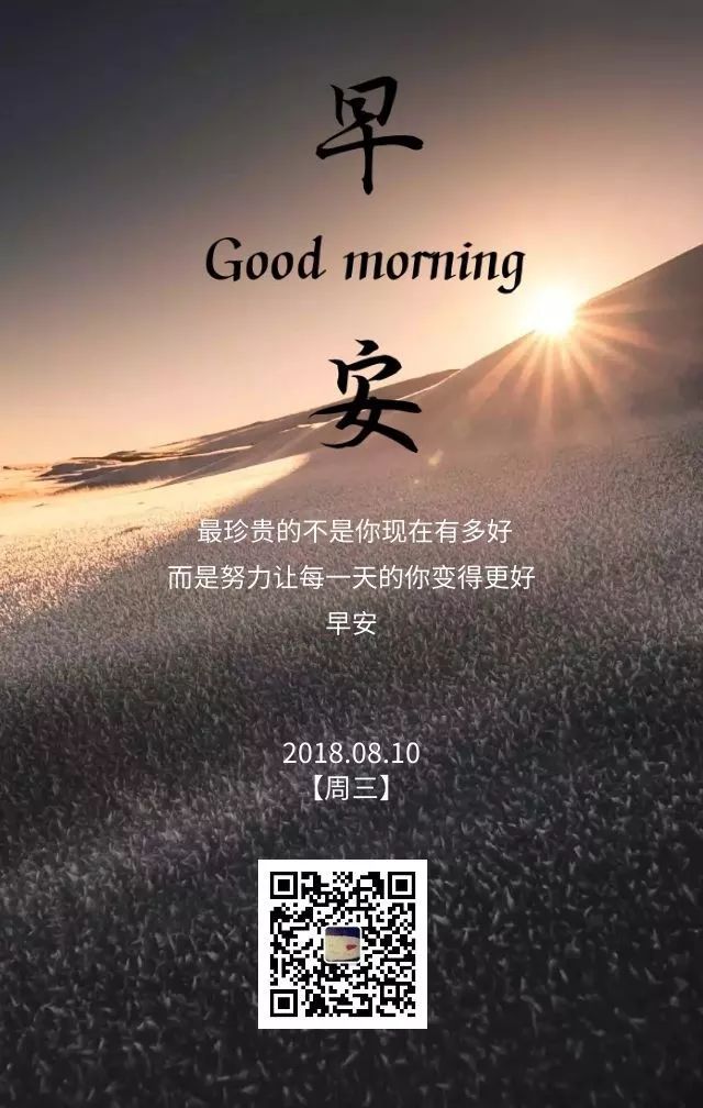9、不论这个世界多么糟糕,你的世界一定要精彩;不论人心多么黑暗,你的内心一定要明亮。不要用糟糕去对付糟糕,不要用黑暗去对付黑暗。心里充满阳光,世界就光明无比;心里充满感恩,世界因此灿烂。请记住:你的付出决定你的未来,你的汗水记得你的成就,你的态度决定你的一切!新的一天,早安!