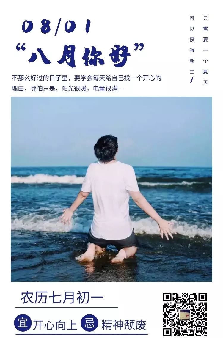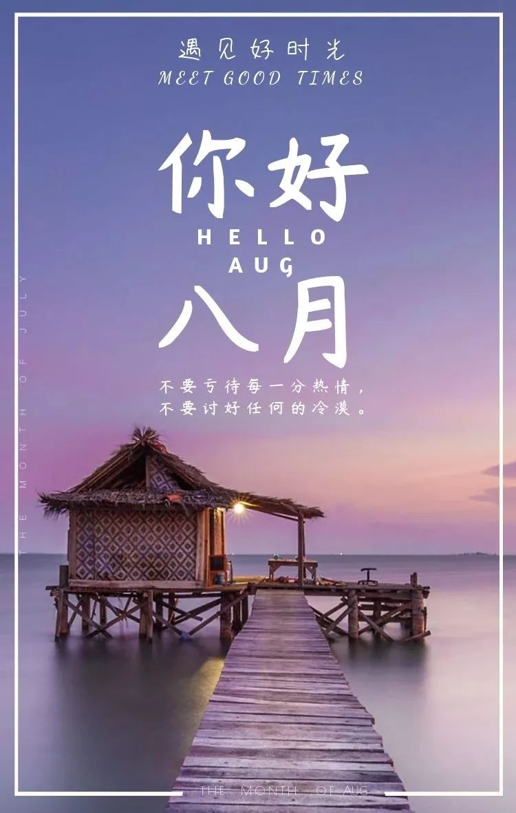 1、 新的八月,从我的问候开始:愿你不再为琐事烦恼,愿努力的人都有钱花,愿你等待的人儿能早日归来,愿你心中的梦想能早点实现。早上好