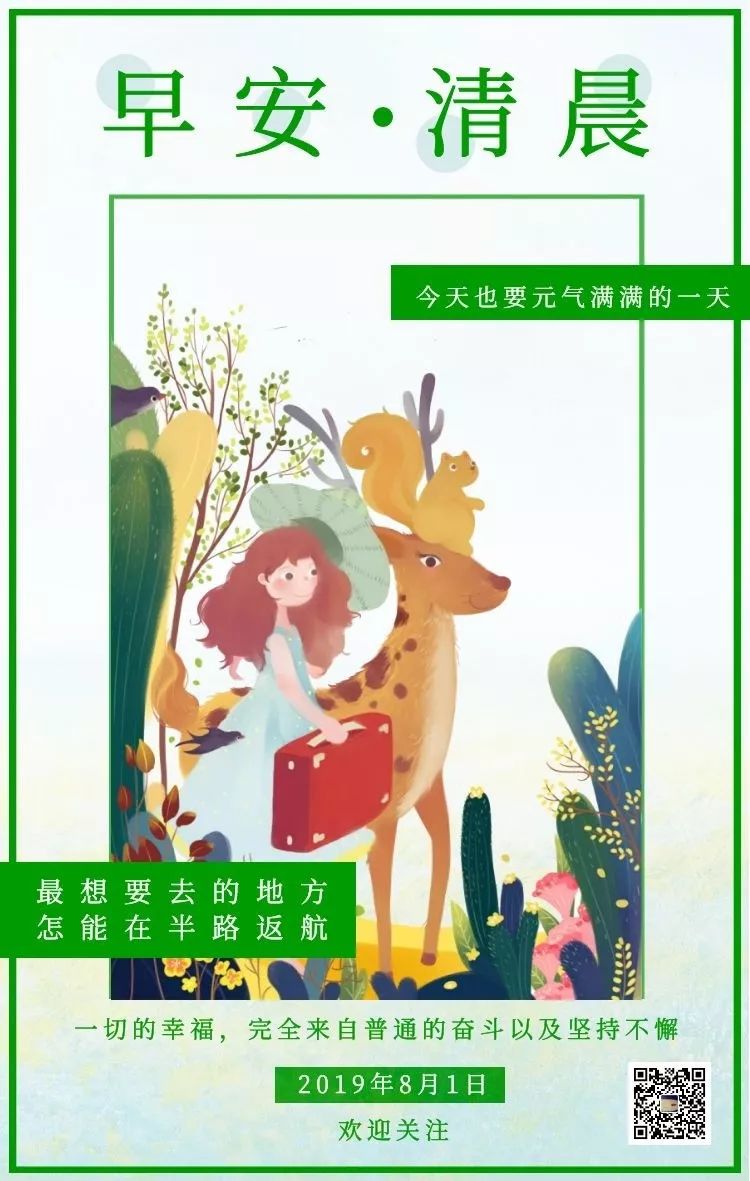 8、成功是干出来的,不是看出来的!想+干=成功;等+看=落空!相信是成功的起点,坚持是成功的终点。要成功就要坚强。与其花长时间怀疑,不如花短时间求证。人生可以有过错,但不能有错过。怀疑和等待你永远看不到未来,拼搏的人生才会更精彩!再见七月,你好八月!早安!
