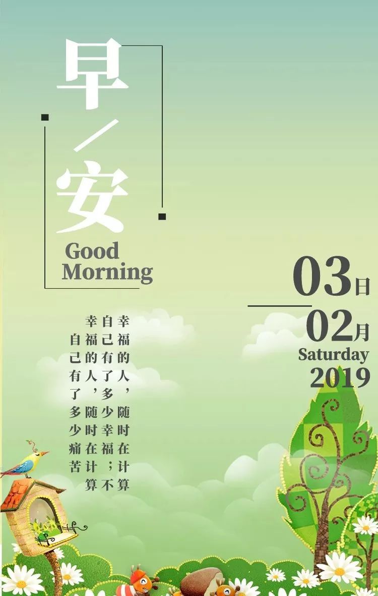 9、也许爱不是热情,也不是怀念,不过是岁月,年深月久成了生活的一部分。幸福人生靠的就是一种心态。真正成功的人生,不在于成就的大小,不在于地位的高低,不在于金钱的多少,不在于名气的有无。而在于:是否努力地完成自我,喊出属于自己的声音,活出属于自己的活法,走出属于自己的道路。早安!