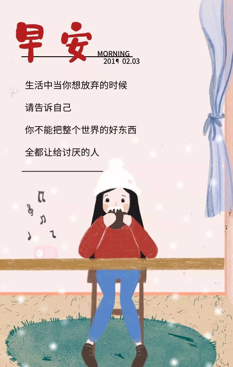 10、有段时间你会特别孤独,一个人上班一个人下班一个人吃饭一个人睡觉,甚至跨年都是一个人在高速公路上。这时候不需要找人倾诉不需要找精神寄托,就一个人撑过去。很快我们都会学会沉淀自己,找到属于自己的生活方式,这是成长的一方面。我们都要去体会孤独,未来不见得更好,但我们会更从容。早安!
