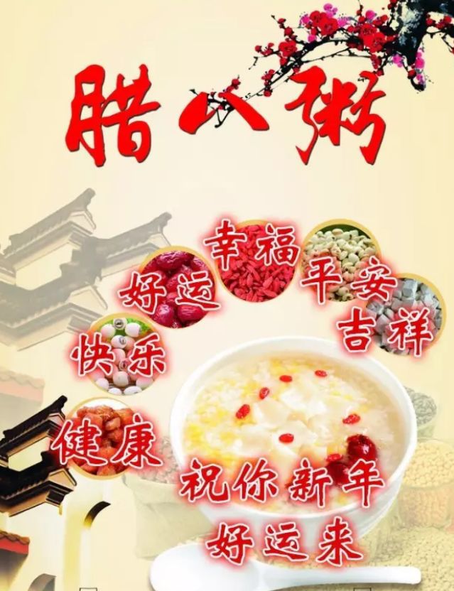 5、 过节了,过节了!你看咱们吃的大米、大枣、红豆、绿豆、小豆大大小小各具特色;红的、绿的、黄的、白的各种各样,让你吃的舒舒服服,腊八节快乐!