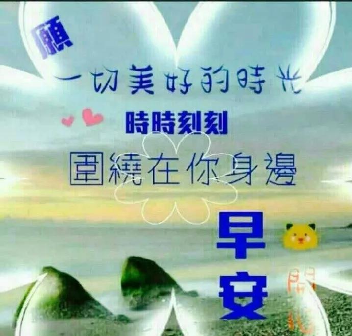 2、清晨曙光初现,享福在你身边。中午艳阳高照,微笑在你心间。傍晚日落西山,欢乐随你一天。愿摘下彩色的花朵,扣上思念,许下祝福;愿平安绕您身旁,喜悦与你同行,好运永相随!
