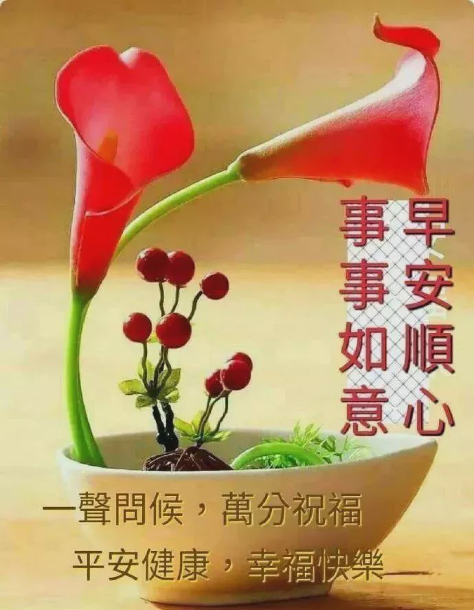 早上好!我的朋友,遇见了你、认识了你就是缘分,是经过三千年修炼得来的。所以我格外珍惜你、惦念你、牵挂你、祝福你、问候你每一个清晨:人之相敬,敬于德:人之相交,交于情。一句问候,相互牵挂,言语不多,祝福无价。在這寒冷的冬天,愿我的祝福能帶给你春暖花开般的温暖!朋友早安康乐!吉祥如意
