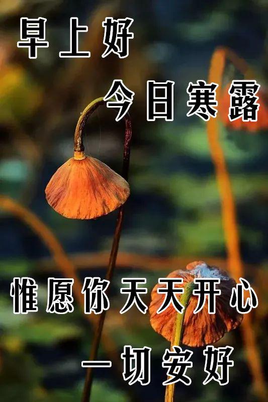 3、天气凉了,还好我的祝福温暖着;流感强了,还好我的关怀陪伴着;温差大了,还好我的拥抱准备着;寒露到了,还好我的问候及时着。寒露节气,寒冷来了,阳光还温暖着,祝快乐每天!