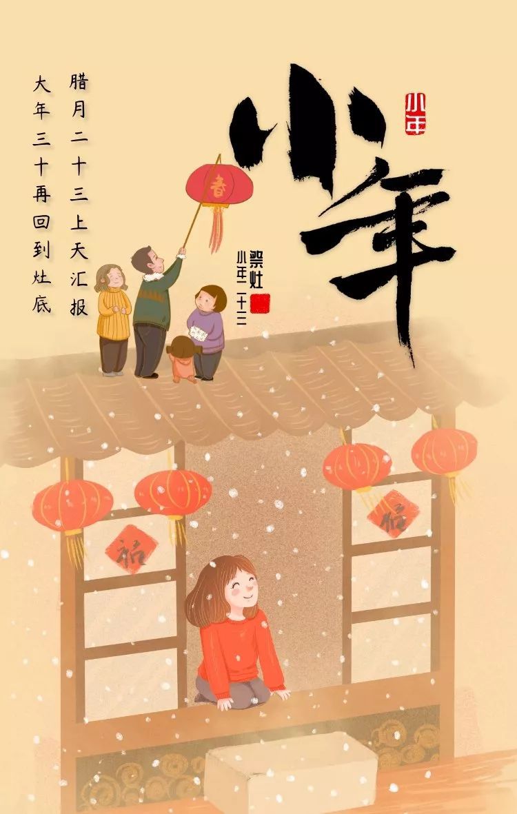 2、腊月23,灶王爷上天;糖瓜柿饼枣,嘴甜好事到;美酒不可少,喜庆眉眼笑;糯米饼备好,黏住幸福脚;水饺有门道,快乐里面包。祝你小年心情好!