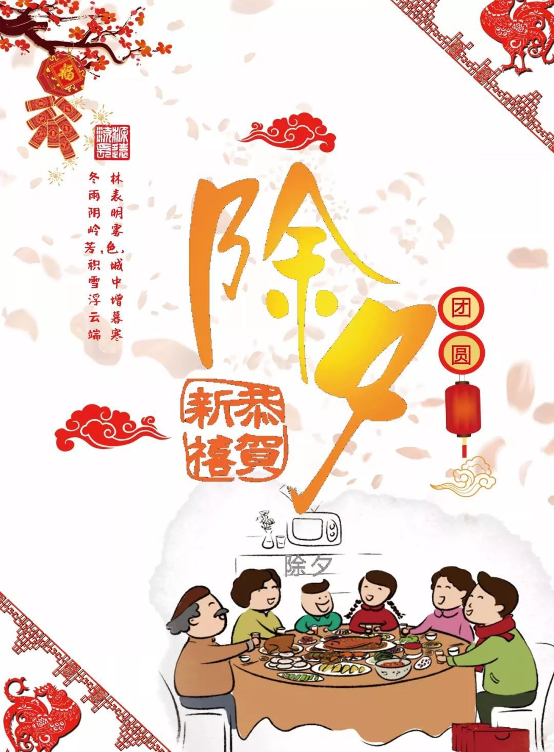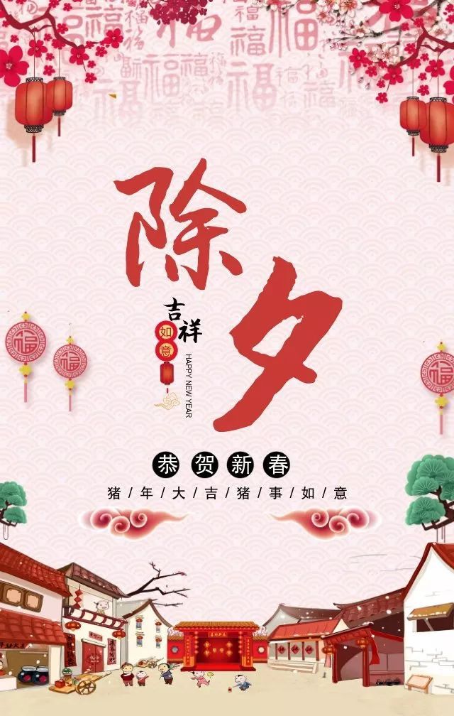 除夕夜,幸福年,全家和乐融融享团圆;挂灯笼,贴春联,福到家中乐不完;包水饺,蒸年糕,有滋有味心里甜;看春晚,燃烟花,红红火火又一年。除夕夜,愿大家快快乐乐迎新年。