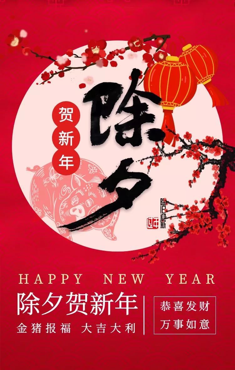 除夕到,金猪耀,千家万户齐热闹;辞旧岁,迎除夕,平安快乐喜相随;贴春联,饮美酒,富贵满盈财运旺;问候来,祝福到,友谊长存心温暖。祝您猪年行大运,幸福乐逍遥!