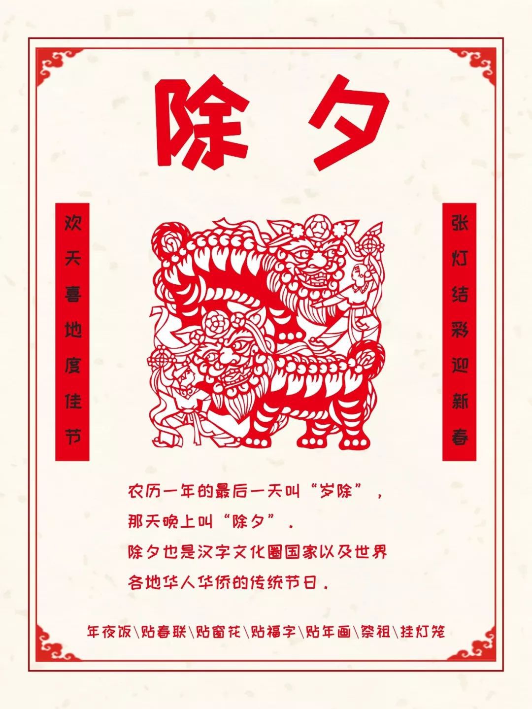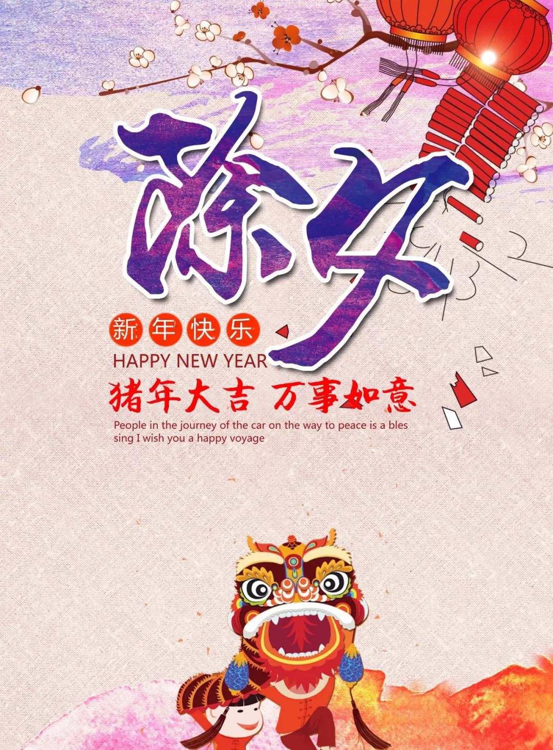 烟花灿,笑脸甜,是除夕之美;贴春联,挂红灯,是除夕之颜;磕喜头,拜大年,是除夕之形;庆团圆,合家欢,是除夕之乐;祝吉祥,盼平安,是除夕之愿!