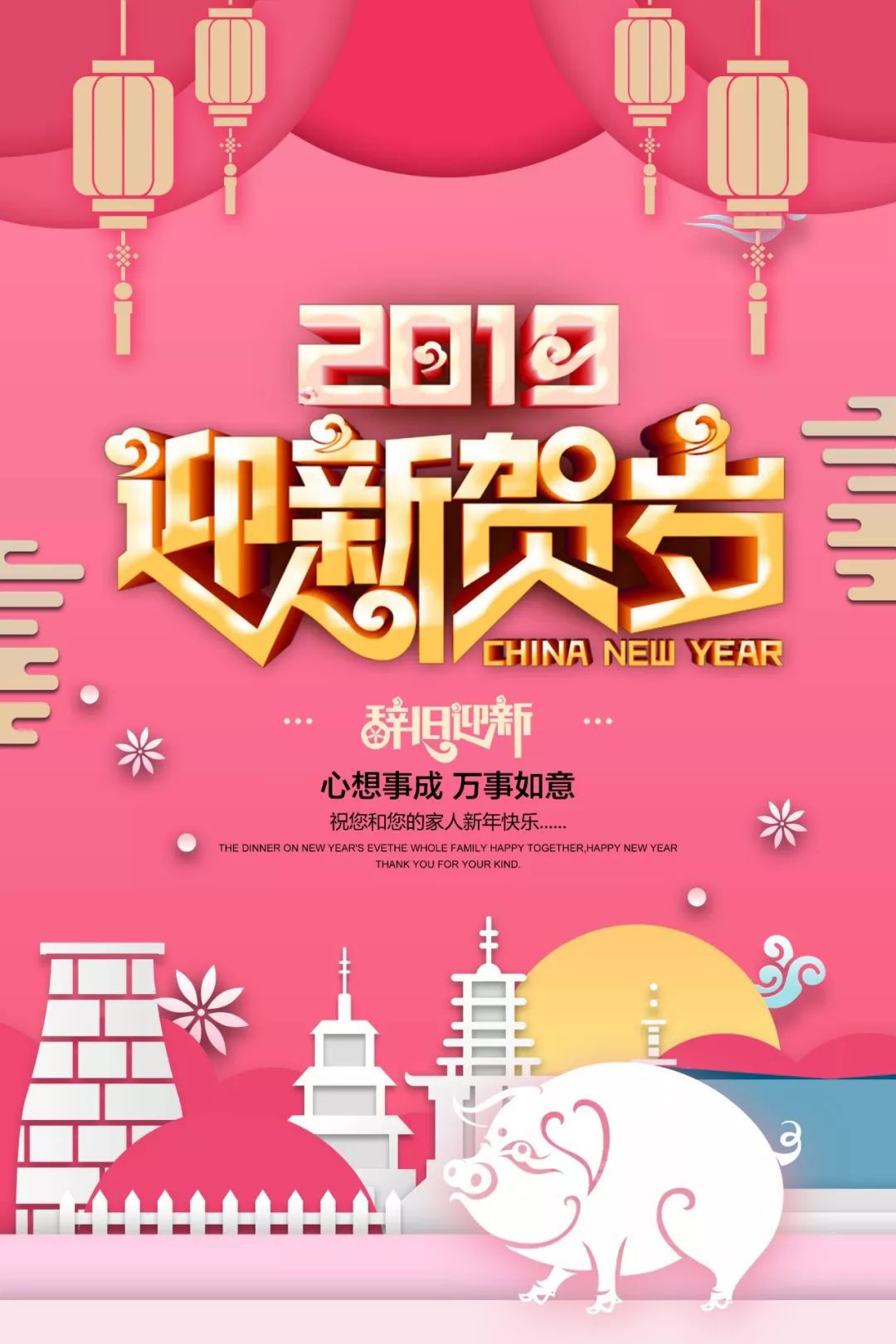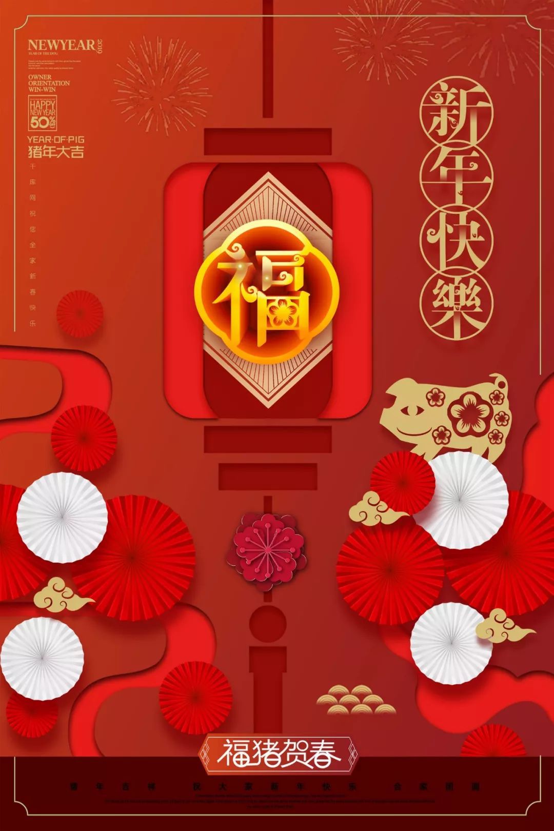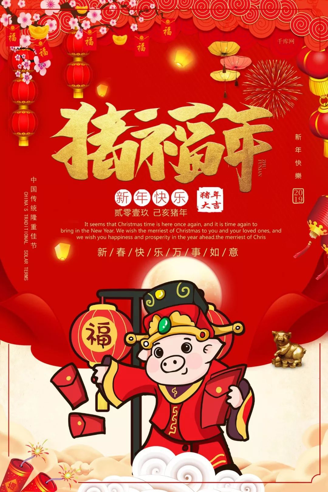 金猪迎春接福,全方位送祝福,预祝你:东行顺利,南走吉祥,西出平安,北遇祥瑞,中有如意,左右逢原,前后添福,内外顺畅,上下和谐,猪年好运。